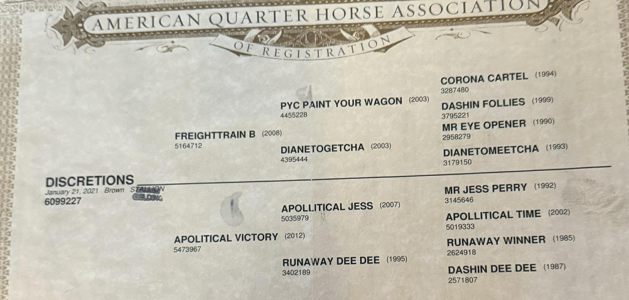 DISCRETIONS (TX) 2021 AQHA Gelding