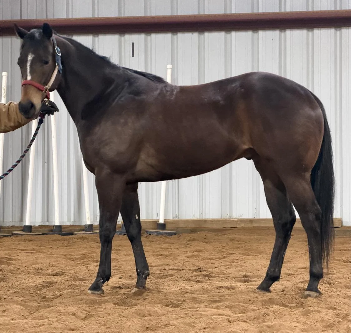 By Freighttrain B, one of the industry’s leading barrel sires, producing consistent futurity and 1D money earners with explosive speed and natural rate.Out of Apolitical Victory (TX) — 15 starts, 2 wins, 5 seconds, 2 thirds, $31,621 earned. A daughter of Apollitical Jess from a Runaway Winner female line. Proven speed stacked on both sides.Discretions is a race winner, earning $19,422 from 15 starts with 2 wins and 2 thirds. He has already proven he can compete.Now with 30 days of professional western riding, he is started correctly, balanced, forward, and ready to advance into a serious barrel program.As a 2021 by Freighttrain B, he may be eligible for Ruby Buckle, Pink Buckle, Future Fortunes, Select Stallion Stakes, and Breeders Challenge (subject to nomination status).
